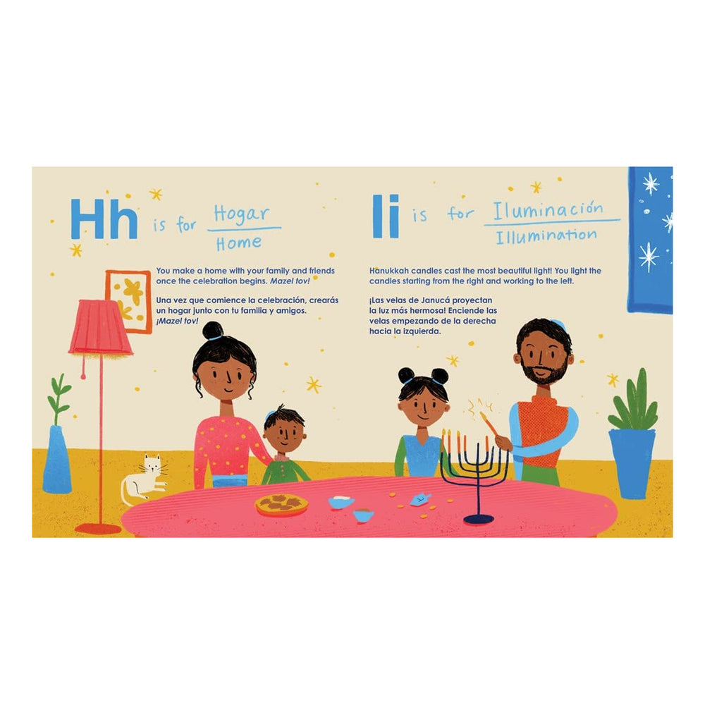 This alphabetical hardcover delves into each letter of the Spanish alphabet to bring to life the many items - from aceite and bendiciones to kugel and tierra - that shed light on the miracle of Hanukkah. Observe families lighting the menorah, spinning the dreidel, hearing the Hanukkah story, and indulging in latkes and sufganiyot for eight precious nights.