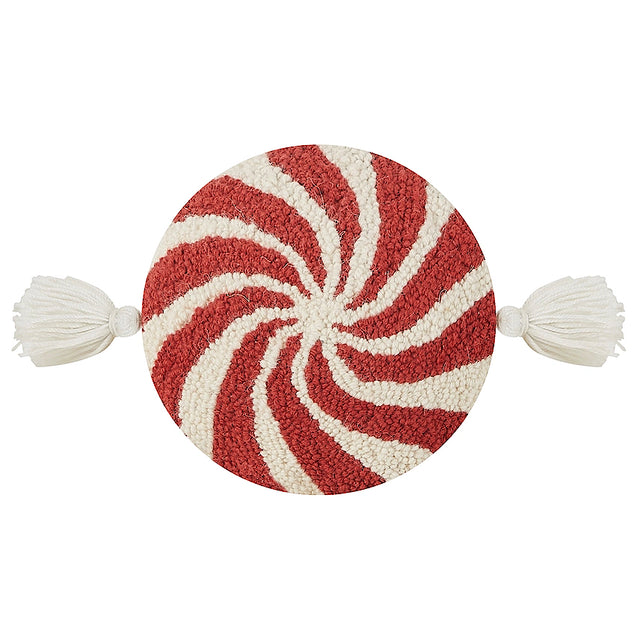 Add a sweet touch of holiday cheer to your living space with this candy-shaped cushion . Designed by Justina Blakeney, this hand-hooked pillow features an adorable peppermint shape and tassel details. Its delicious design is sure to pull your decor together.